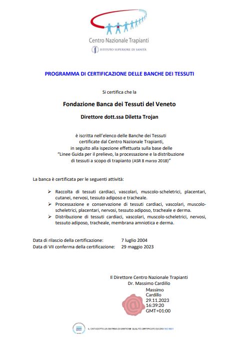 Fondazione Banca dei Tessuti del Veneto ETS / CF – P.IVA IT04478760269 / Privacy Policy